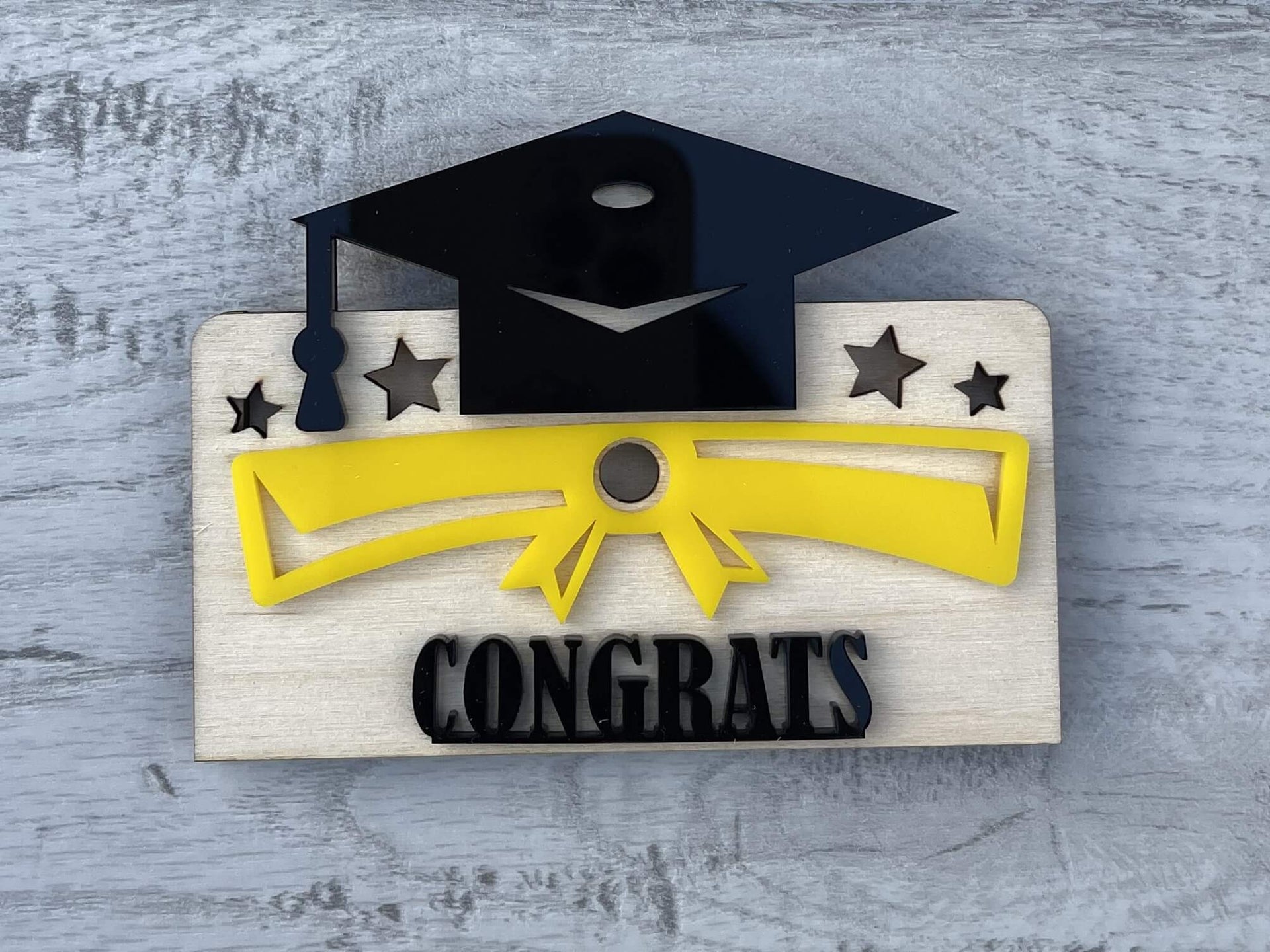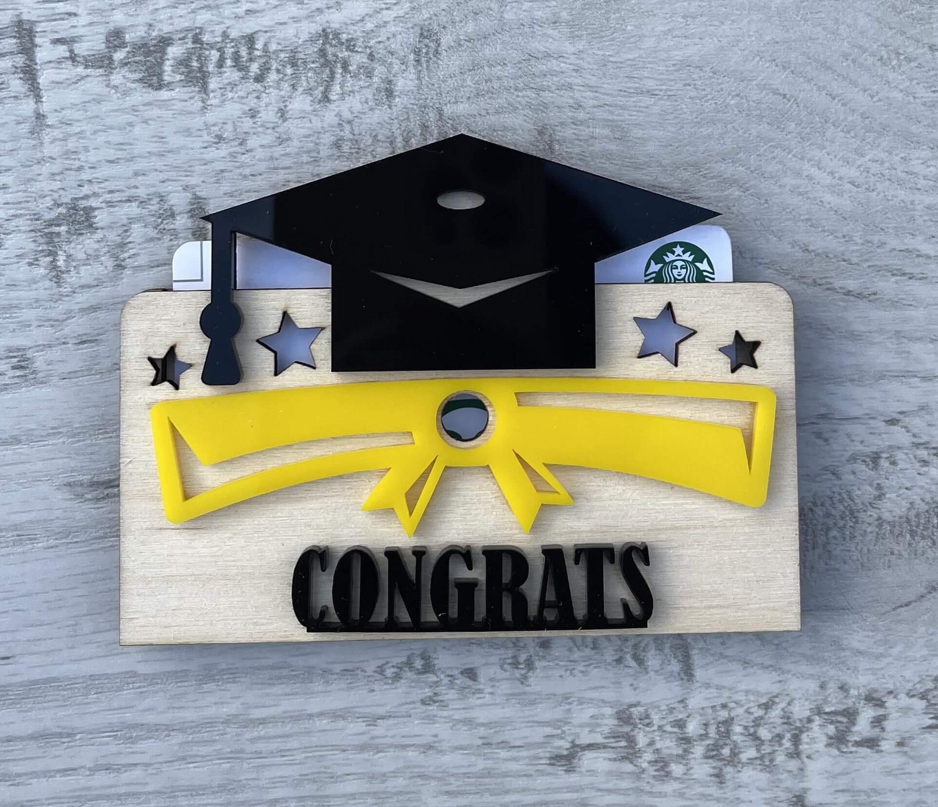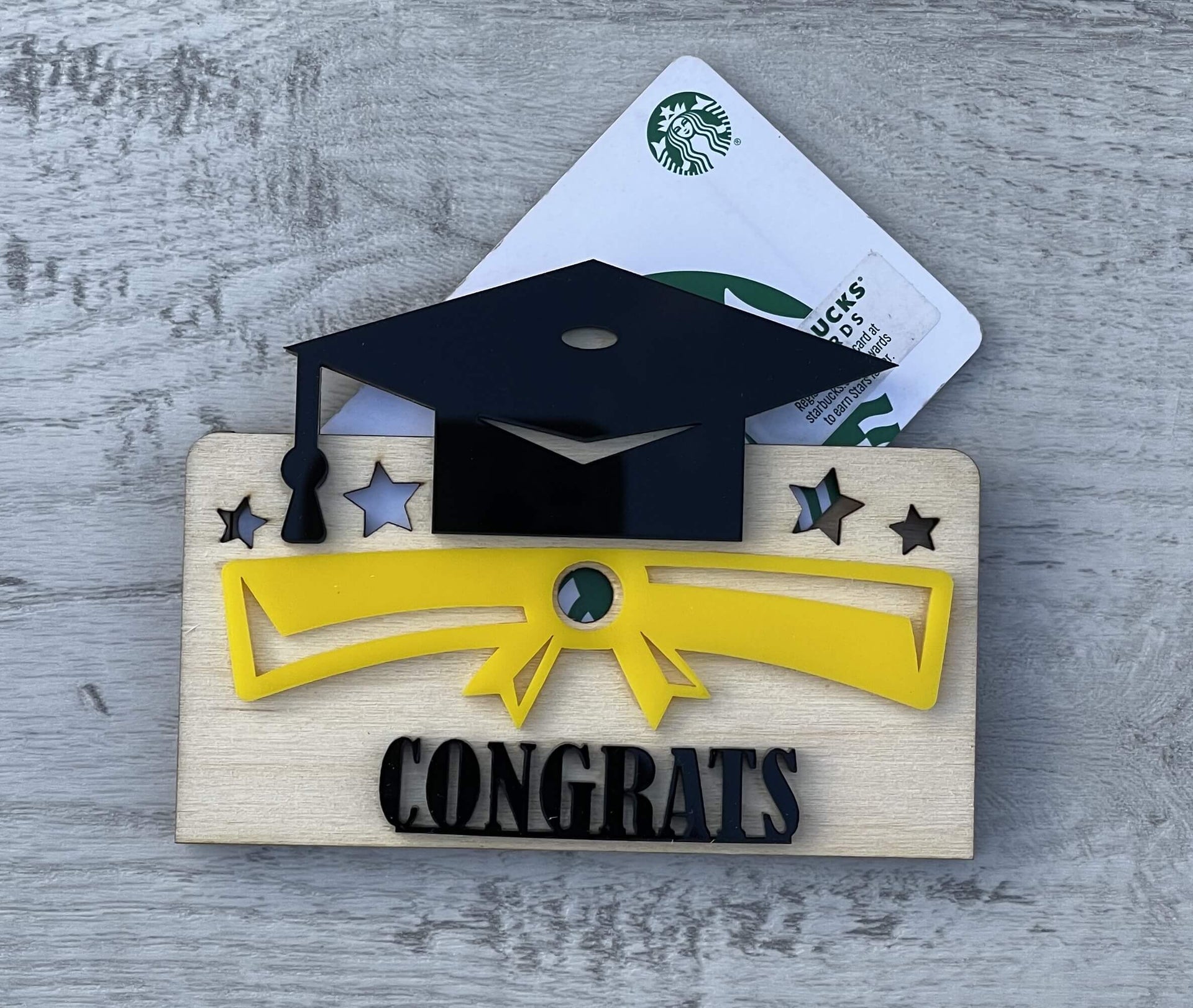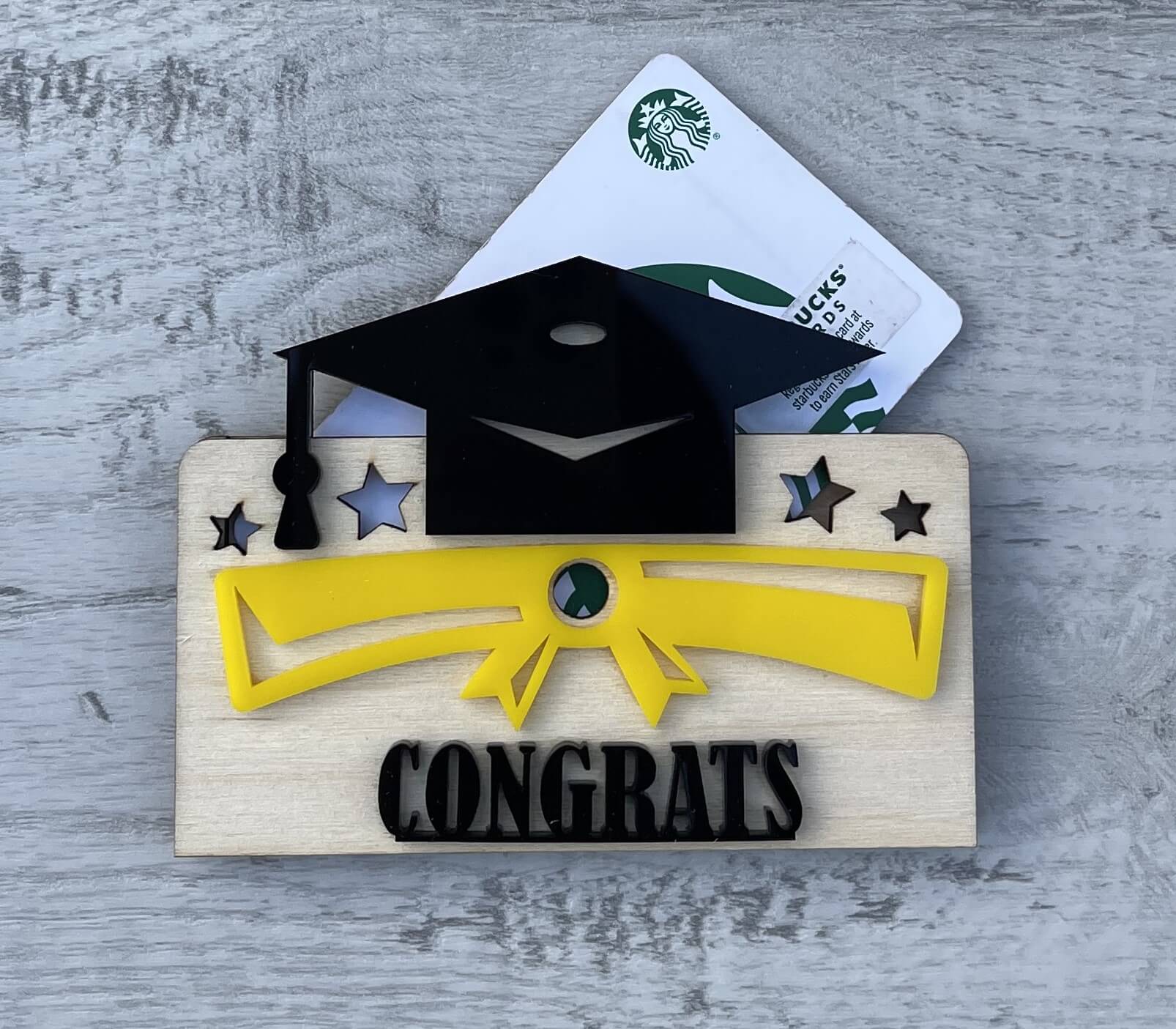Celebrate the graduating class of 2025 with a personalized card holder. Perfect for organizing and storing gift cards, this custom gift is a practical and thoughtful way to congratulate the graduate on their achievements. Honor their hard work and success with a unique and useful keepsake.