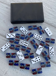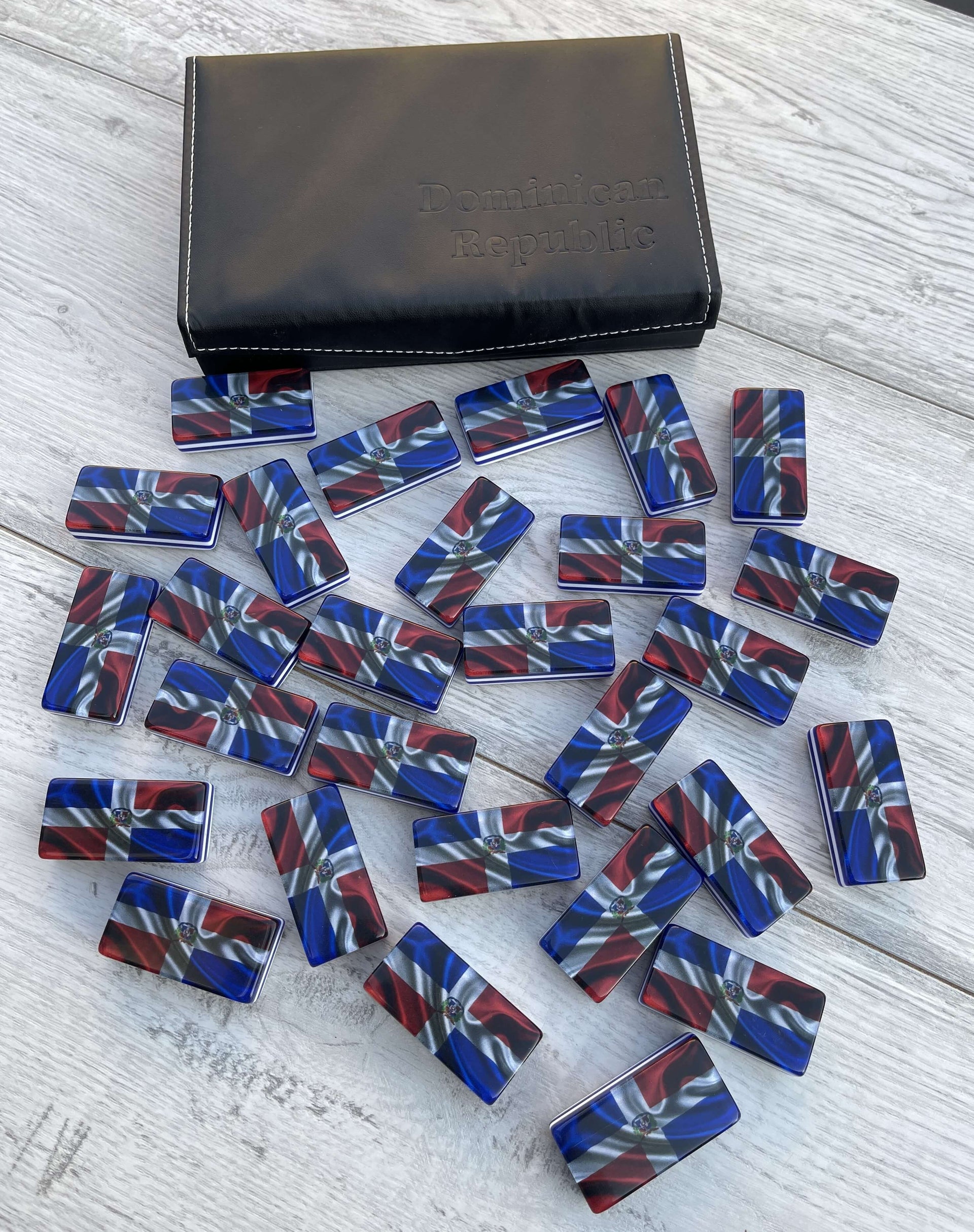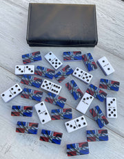 Dominican Republic Flag Jumbo Professional Acrylic Domino Set With Metal Spinner (UPDATED)
