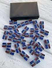 This Domino Set 28 comes complete with a customized handmade Acrylic Dominican Republic Map and Flag for a unique and special gift. Each piece is crafted with care and precision for a perfect game set. Now you can bring a tasteful representation of the Dominican Republic home without ever leaving your couch.
