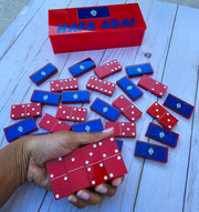 Experience the pride of Guam with our custom resin dominoes set featuring the Guam flag. Expertly crafted with precision and durability, each piece is designed to enhance your gameplay. Perfect for game nights with friends and family, this set will surely elevate your dominoes experience.