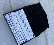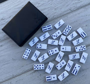 Item Dimension: Domino. Length 2.12 in (53.9mm) Width 1.04 in (26.9mm) Thickness 0.53 in (13.6mm) Faux Leather Box (Black) Length 7.8 in Width 5 in Height 1.71 in.