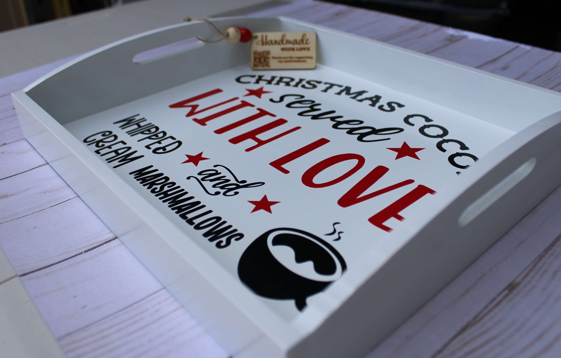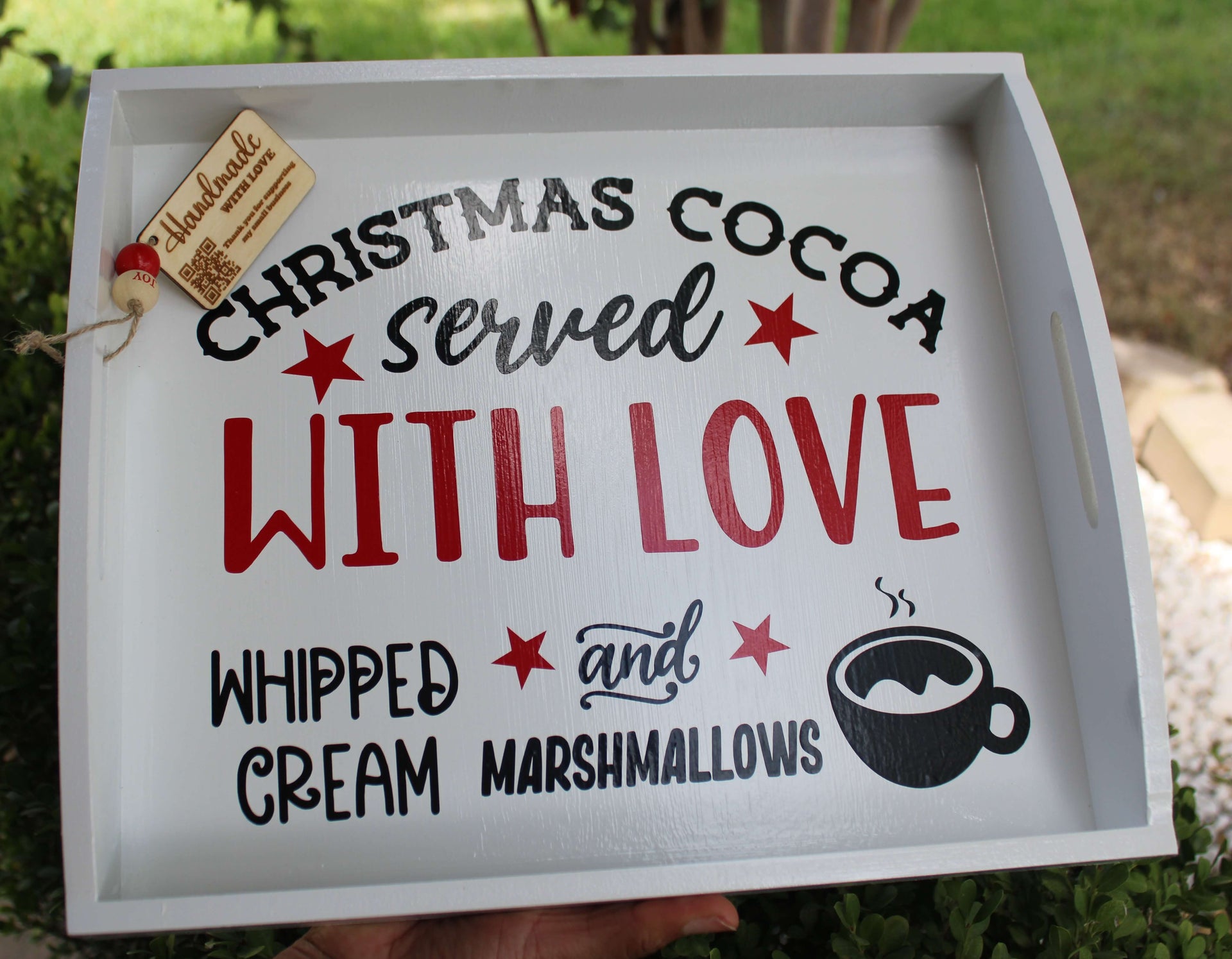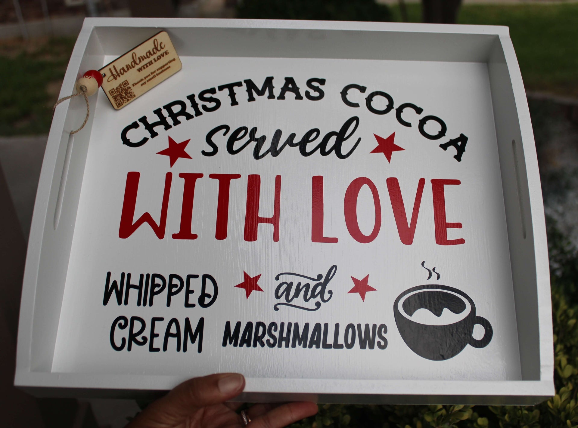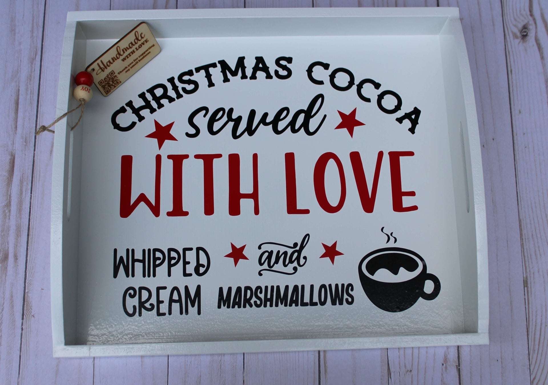 This Christmas Eve Tray is perfect for spreading festive cheer. Includes freshly made love cookies with a cup of hot cocoa, making it the perfect treat for Santa and your family. Crafted with care and attention to detail, this tray is sure to bring a smile to your loved ones’ faces.