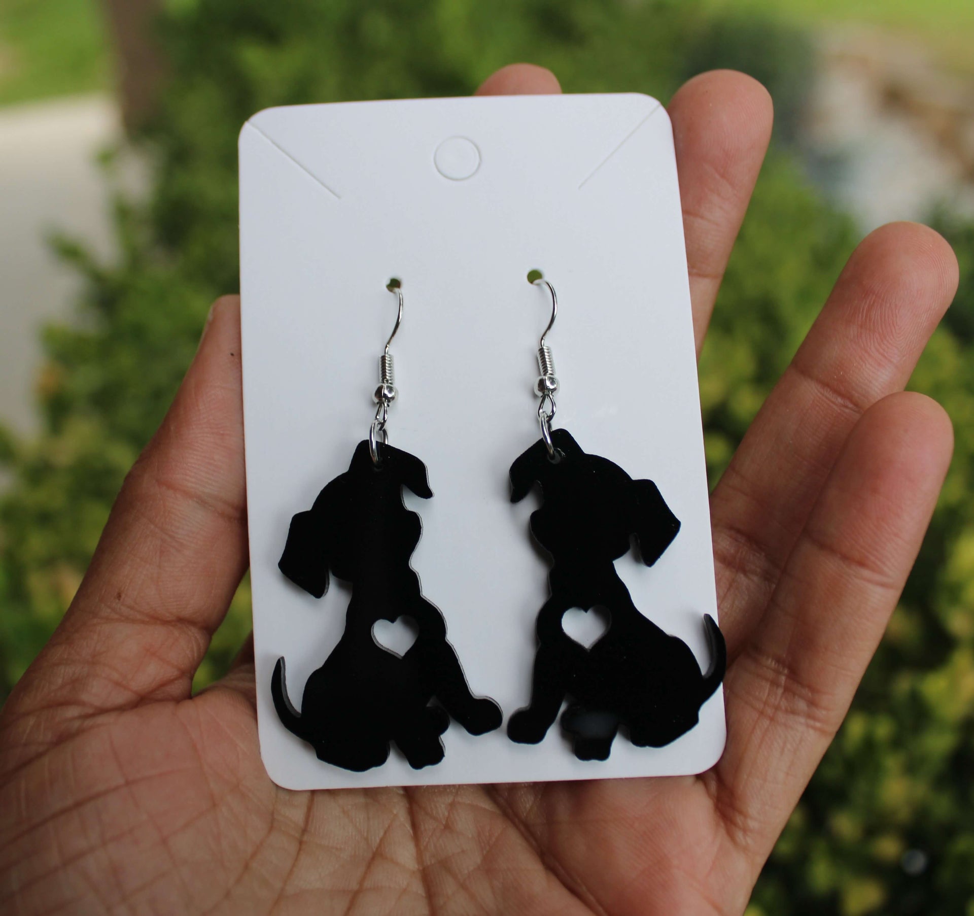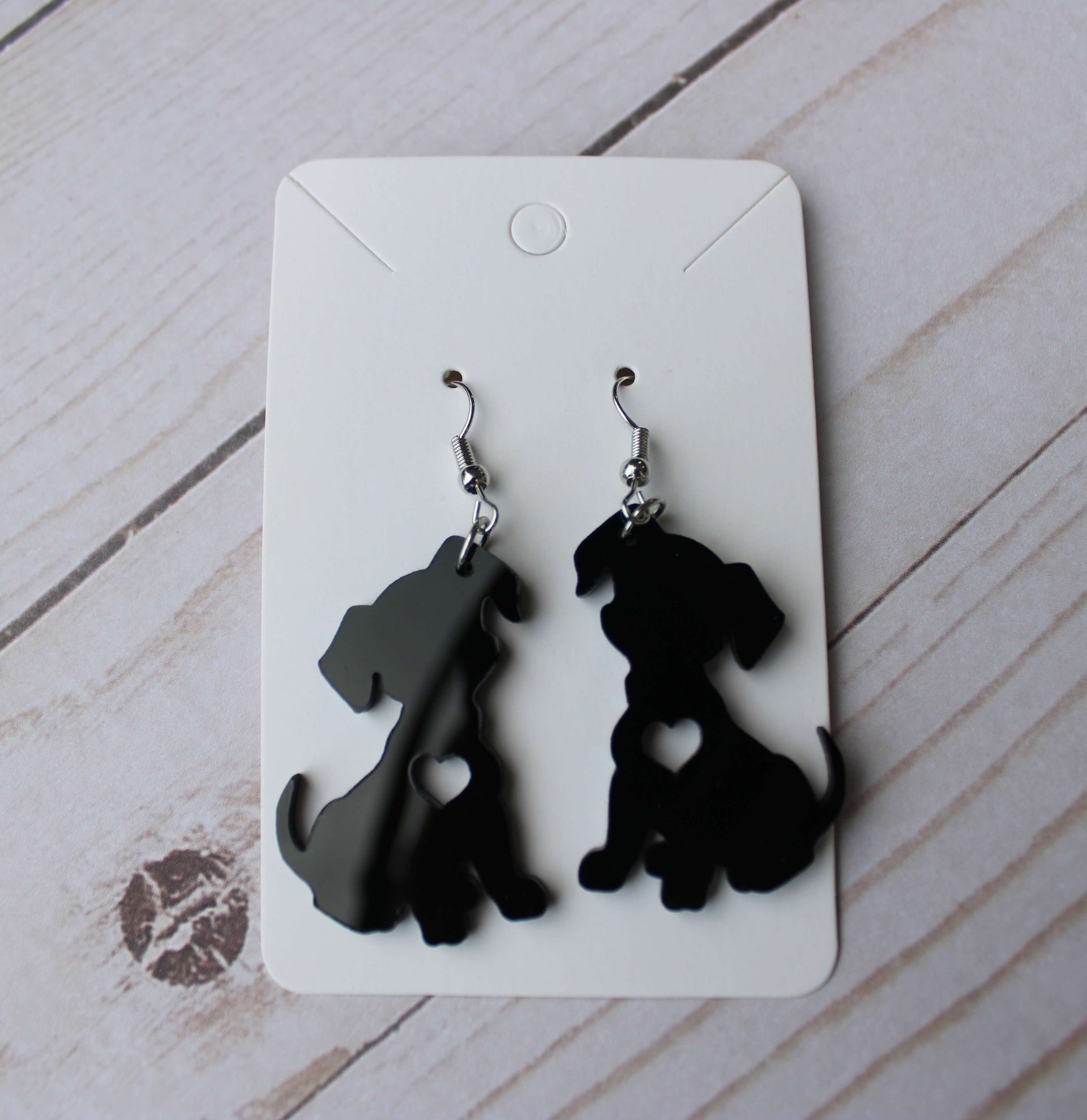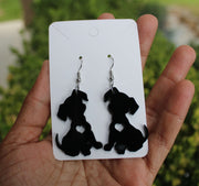 Puppy Dog Dangle Earrings Cute Dog with Heart