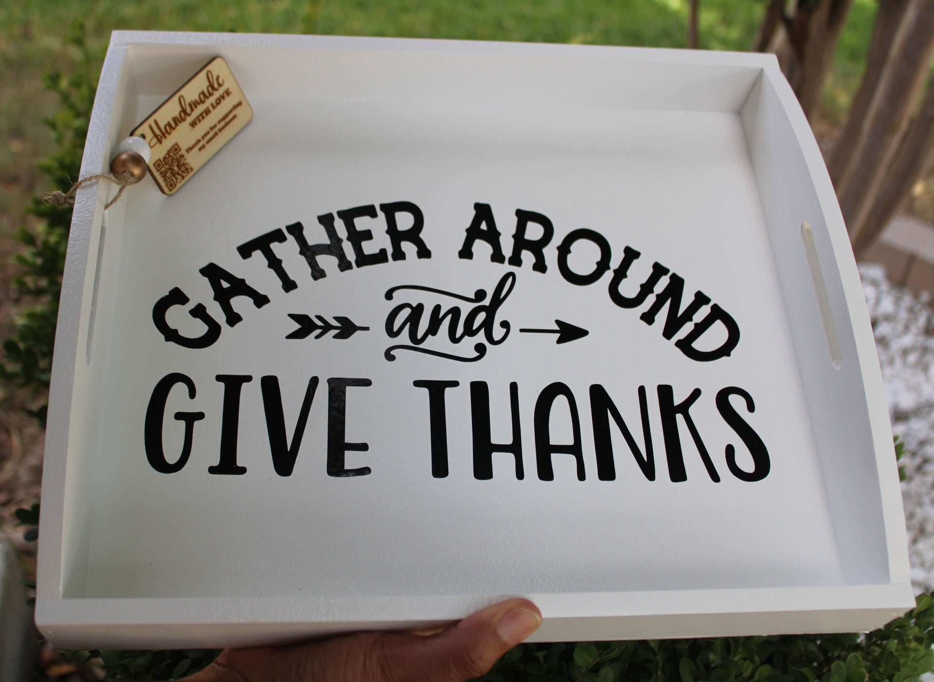 Gather Around and Give Thanks Tray Decoration Home Serving Tray