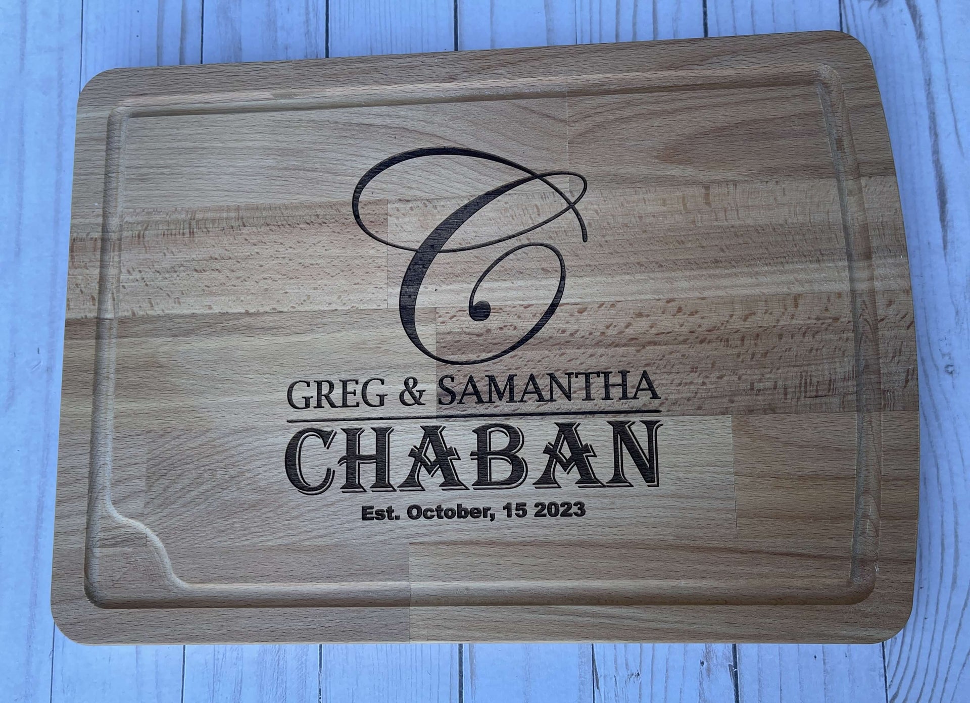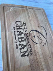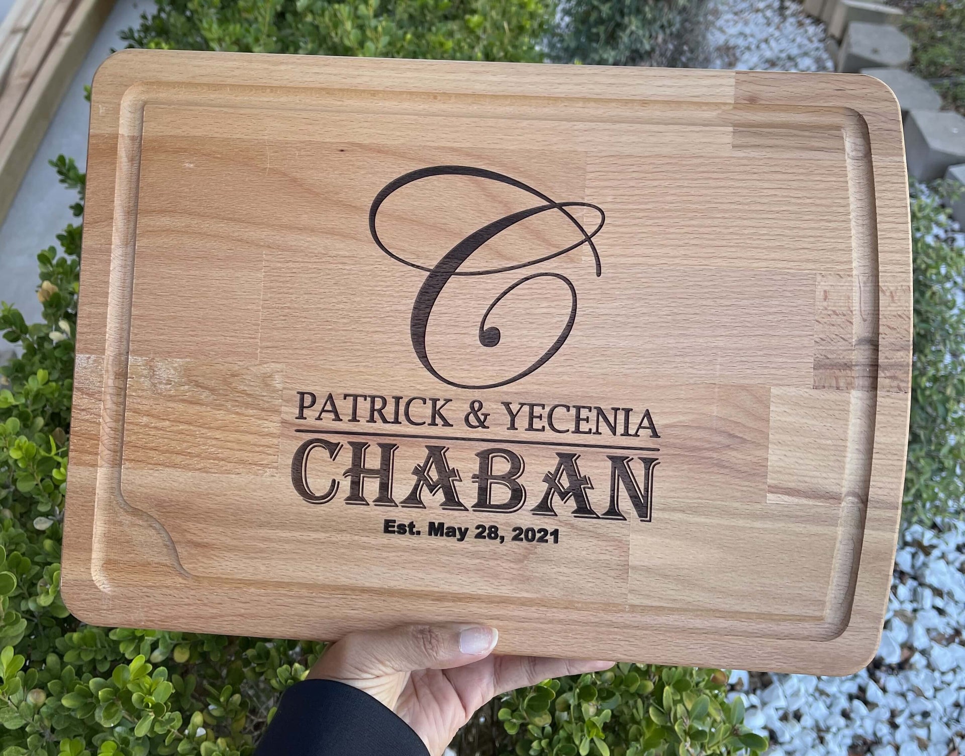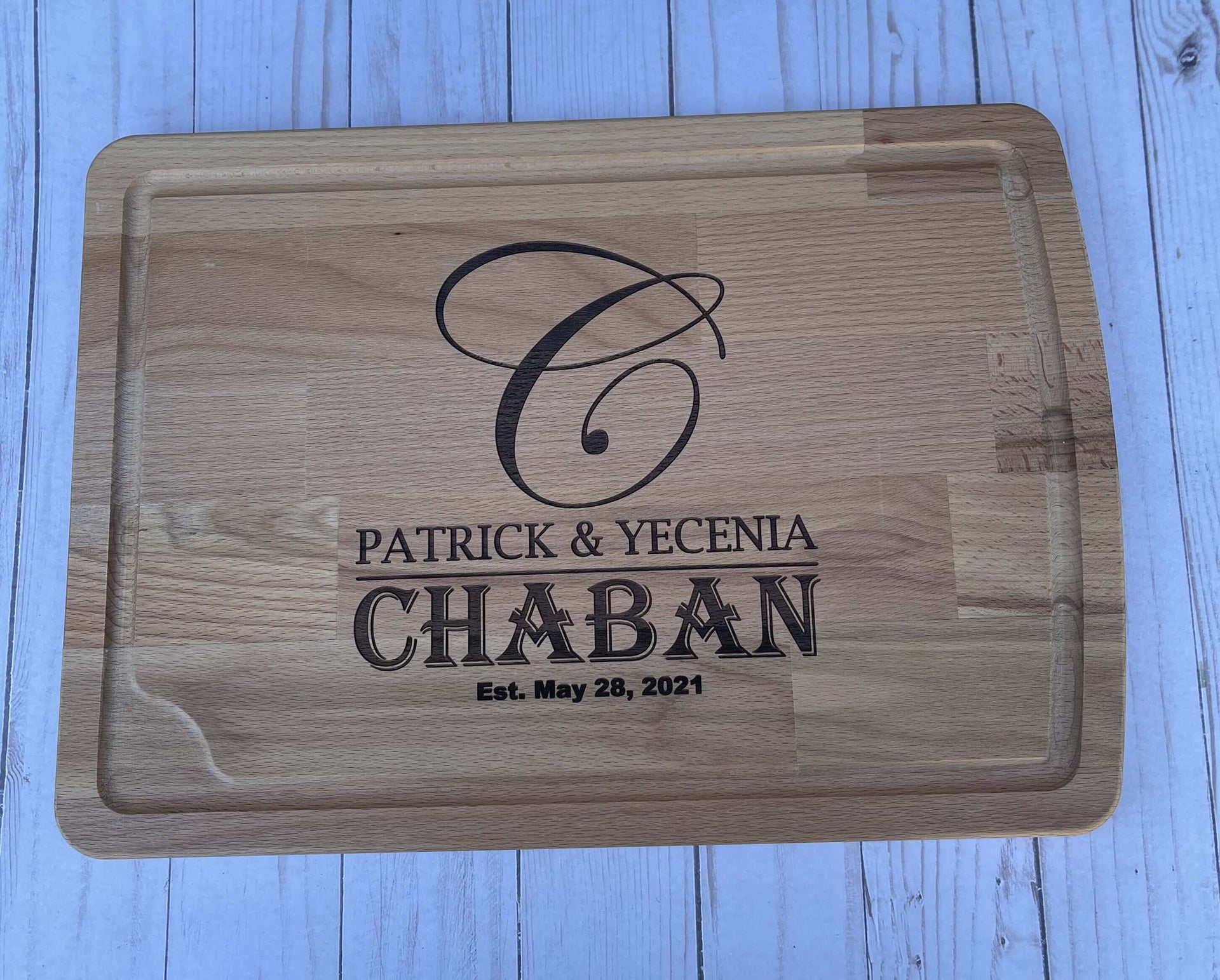 Custom Engraved Cutting Board Wedding Name and Date Cheese Serving Board