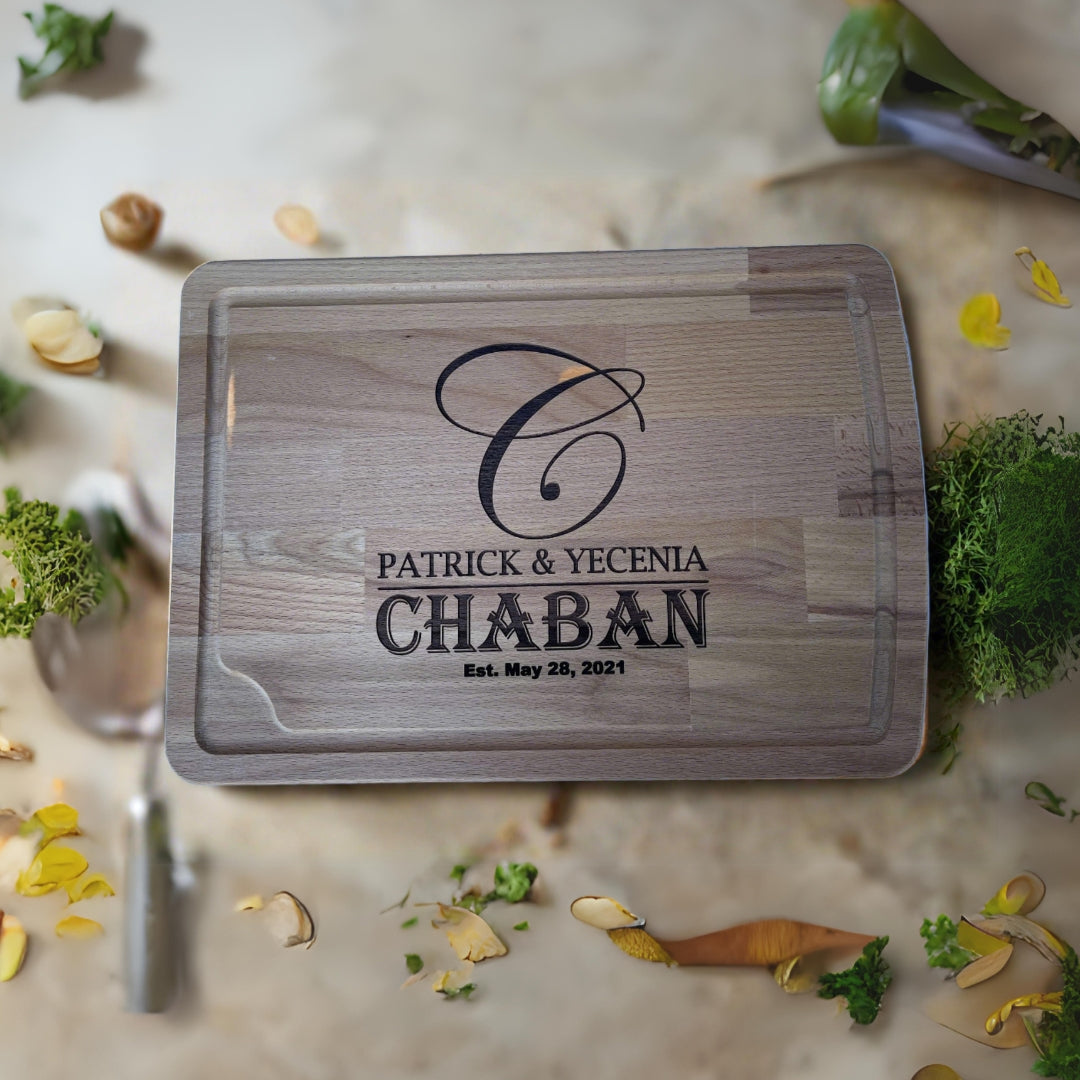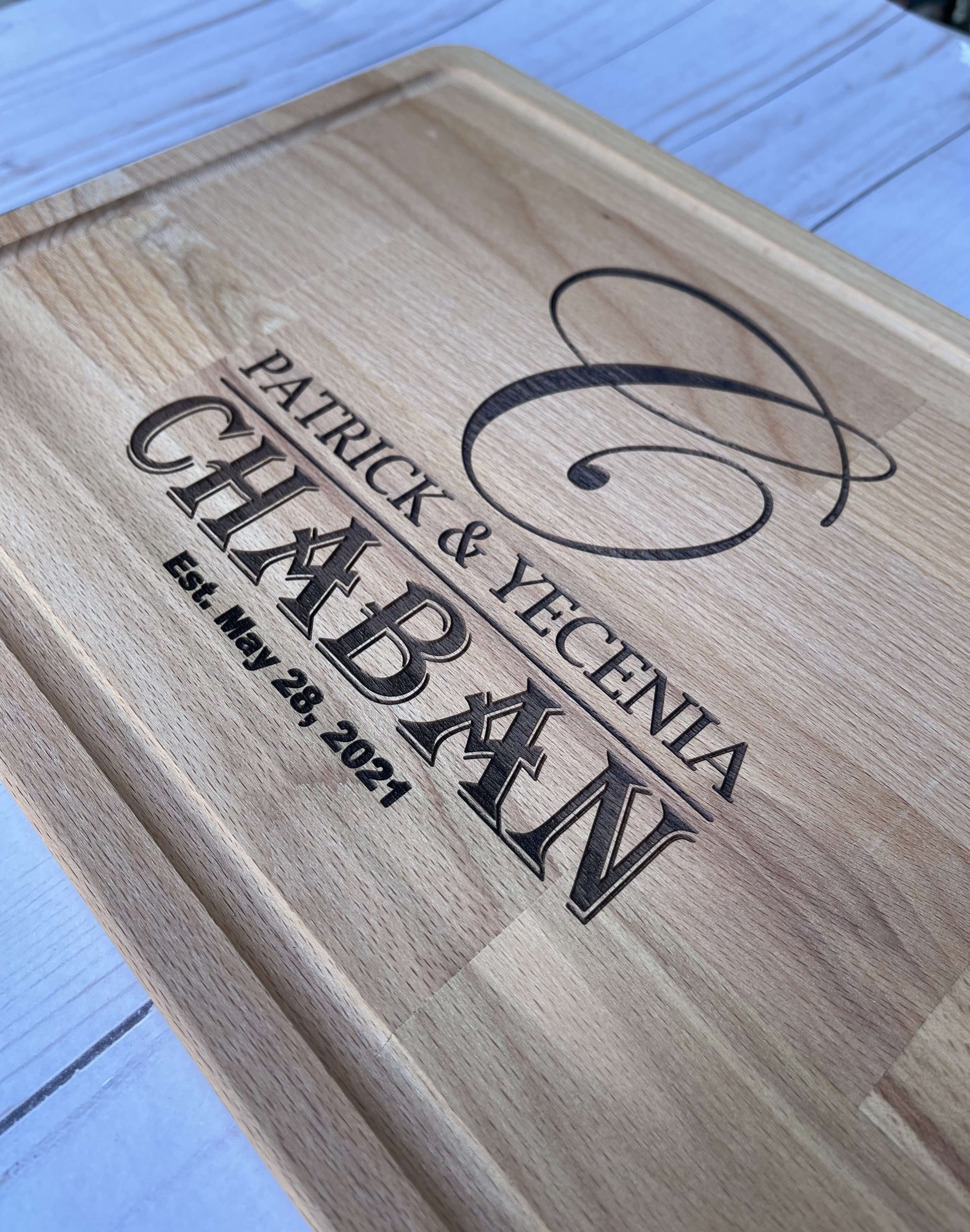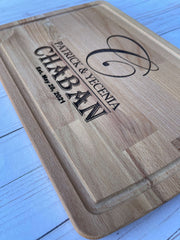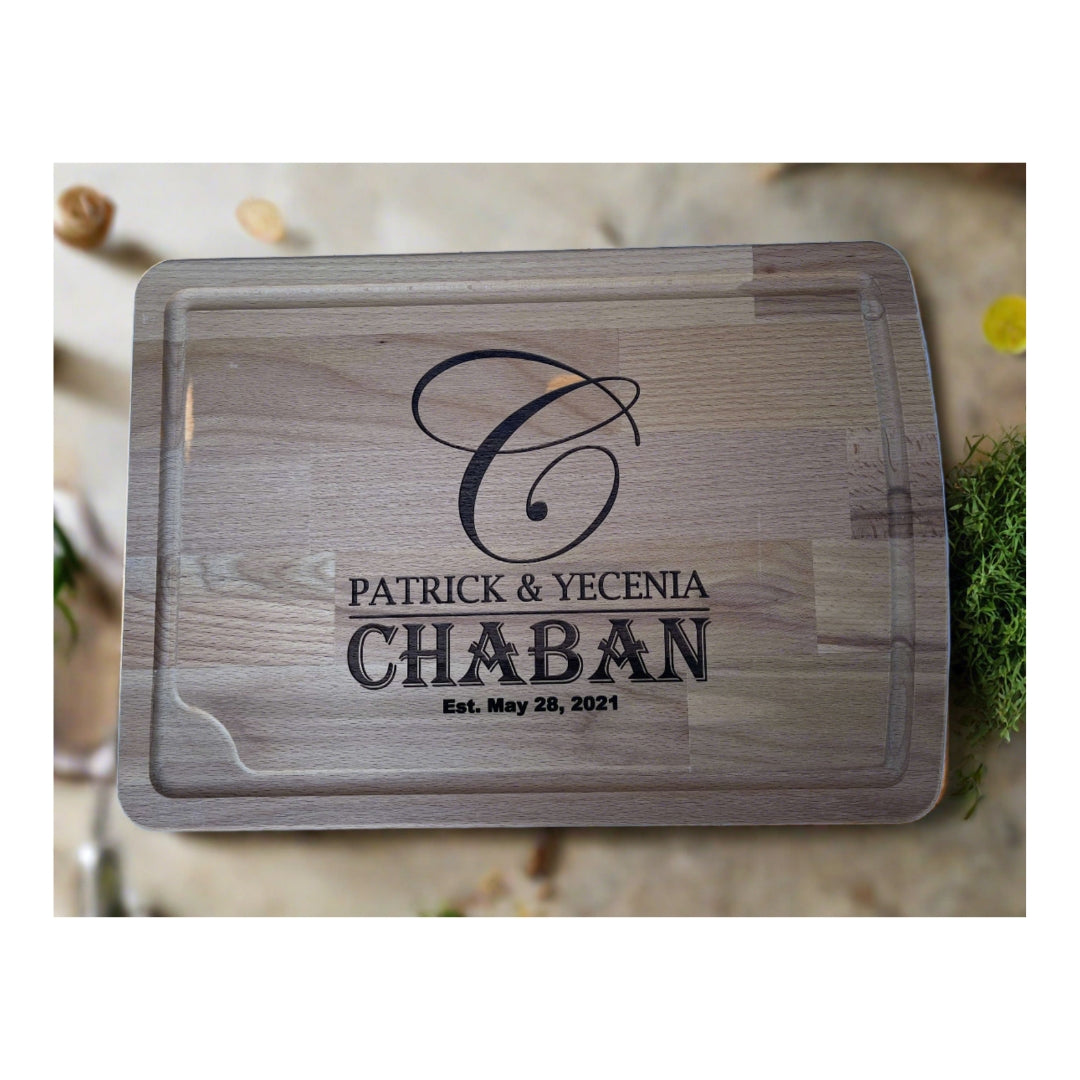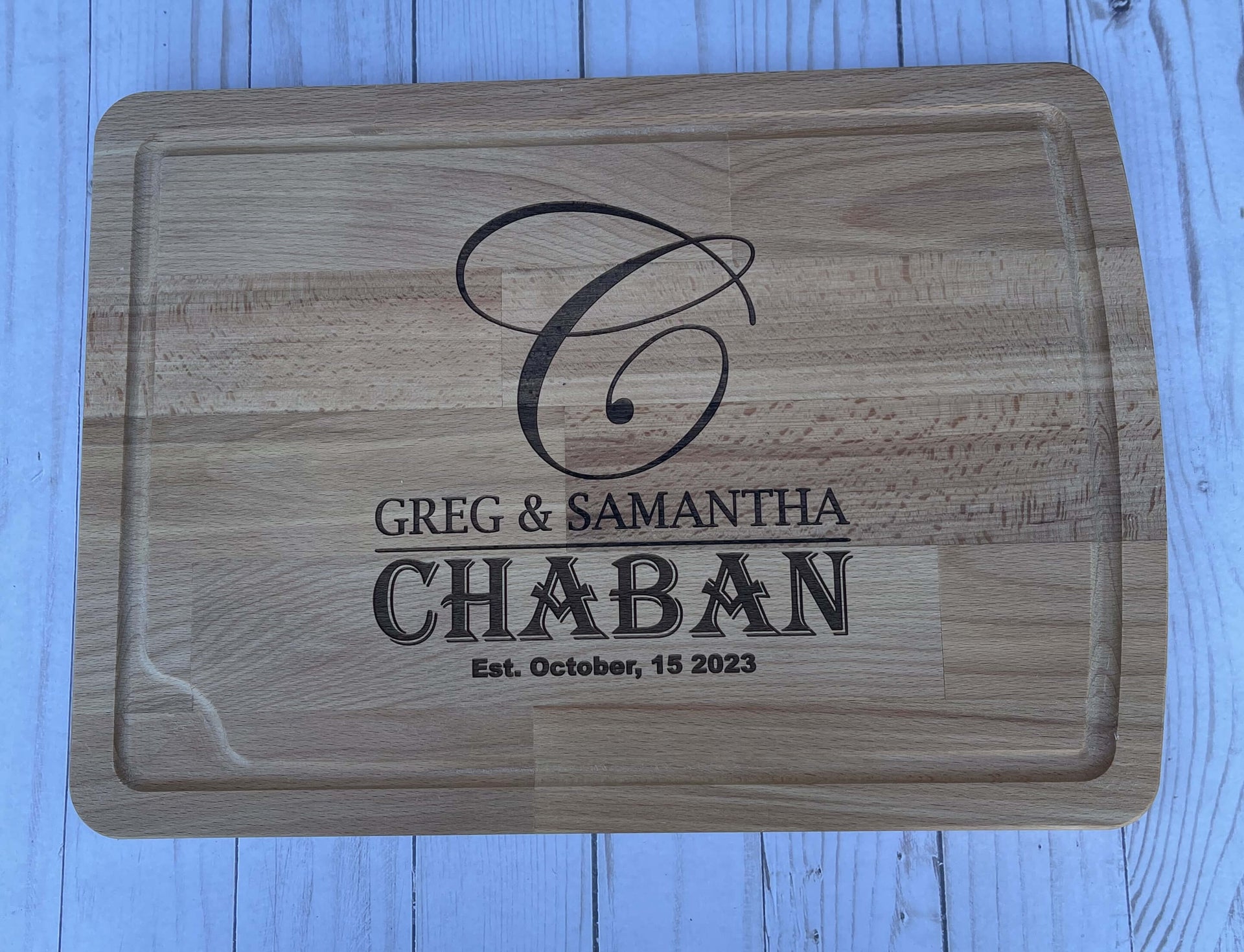 Custom Engraved Cutting Board Wedding Name and Date Cheese Serving Board