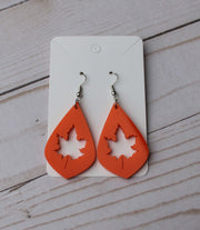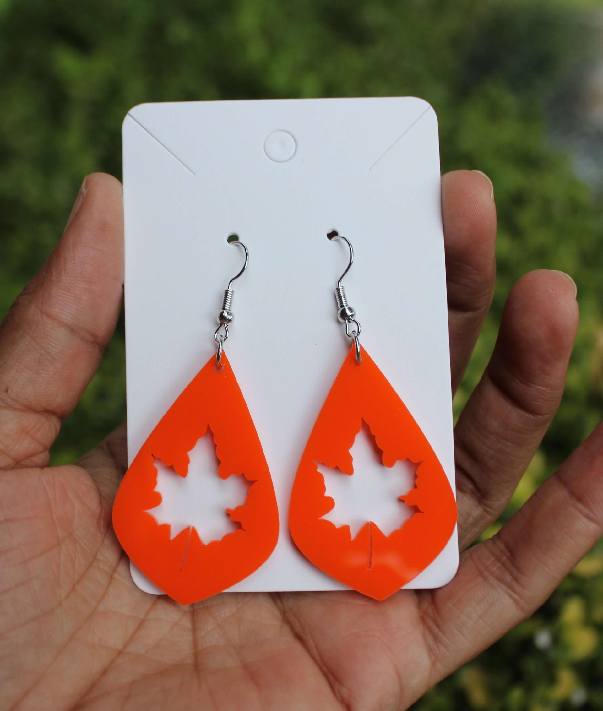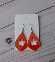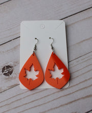 Fall Maple Leaf Dangle Earrings Orange Canada Earrings