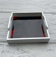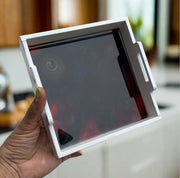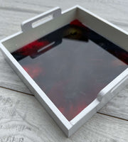 This Small Serving Tray is skillfully crafted using high-quality resin and wood, creating a beautiful and durable piece for your home. Its versatile design makes it ideal for serving food, displaying jewelry, or adding a decorative touch to any space. Elevate your home decor with this elegant and practical tray.