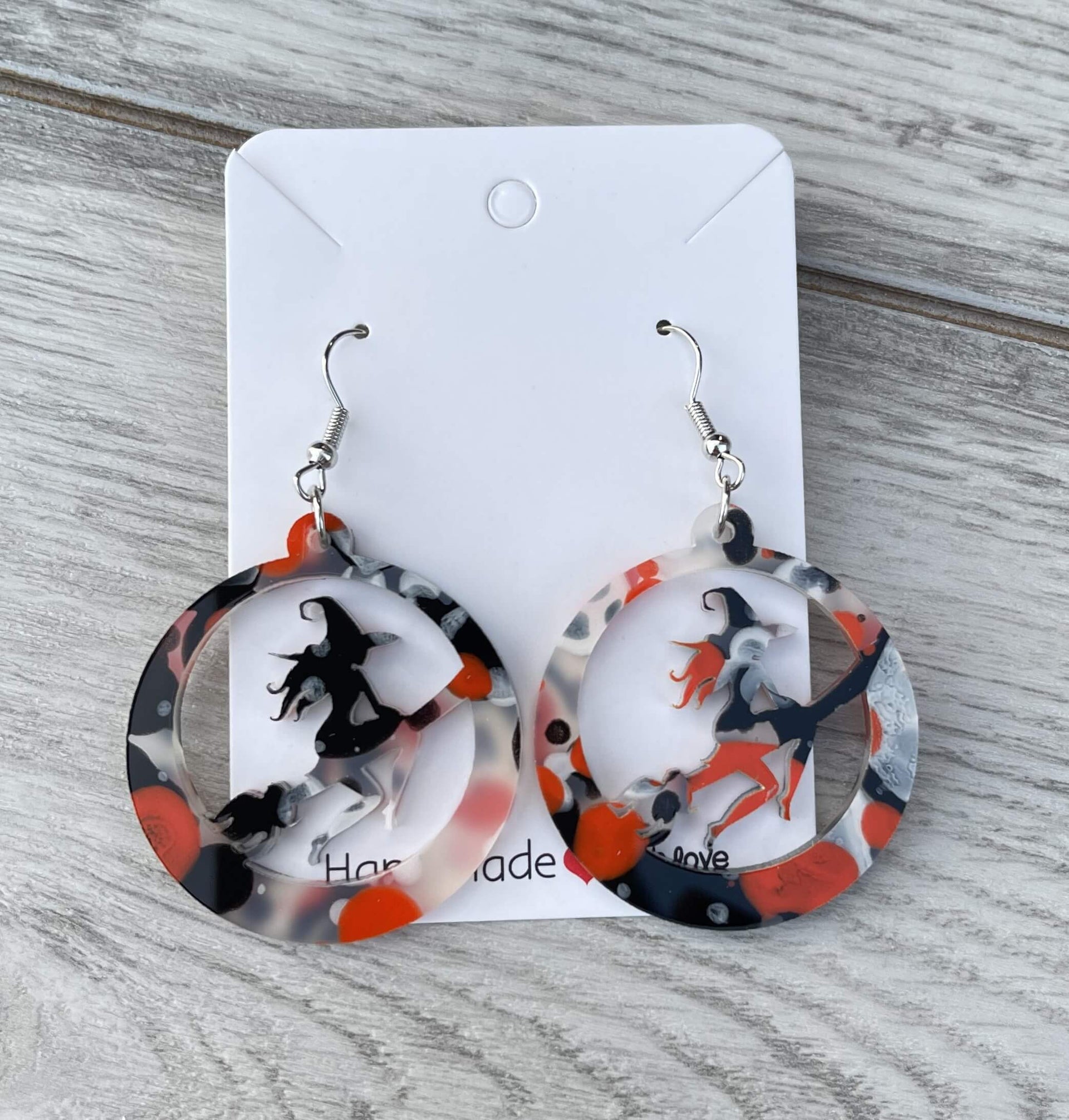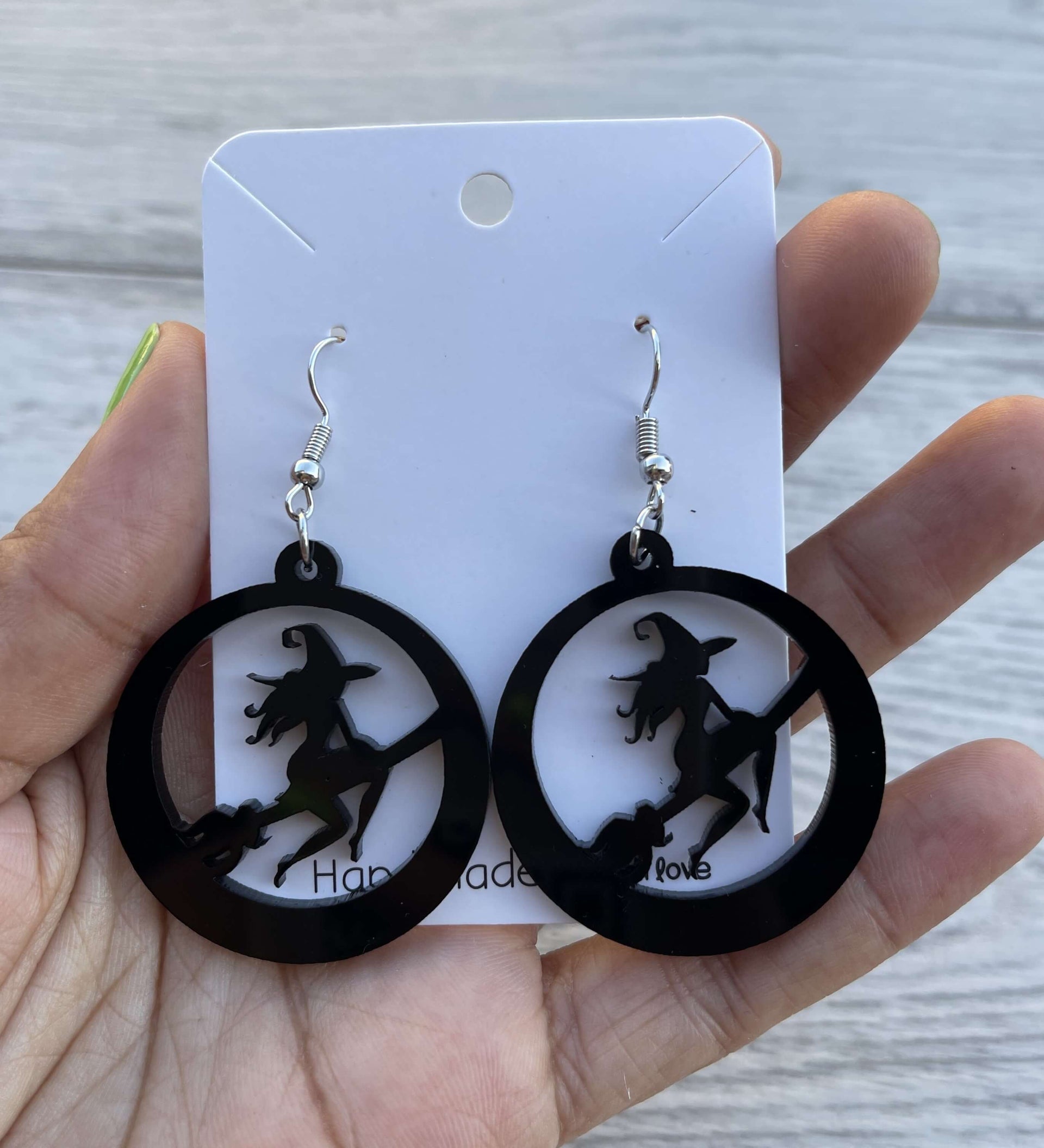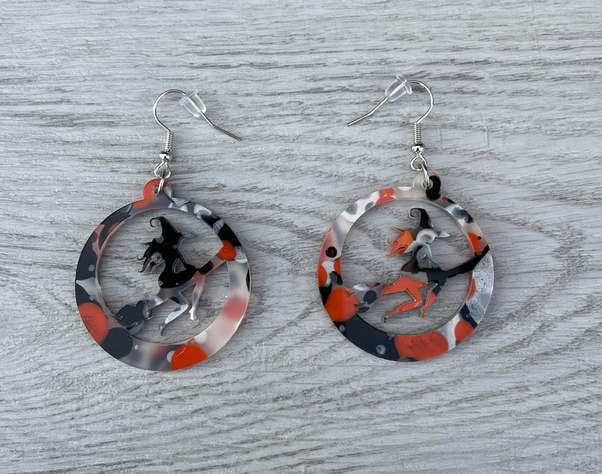 Witch on a Broom Halloween Earrings for Women Gift Halloween Jewelry