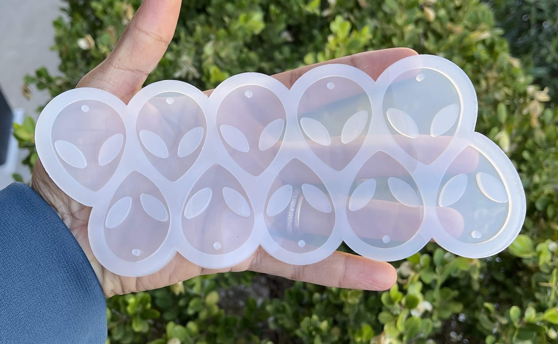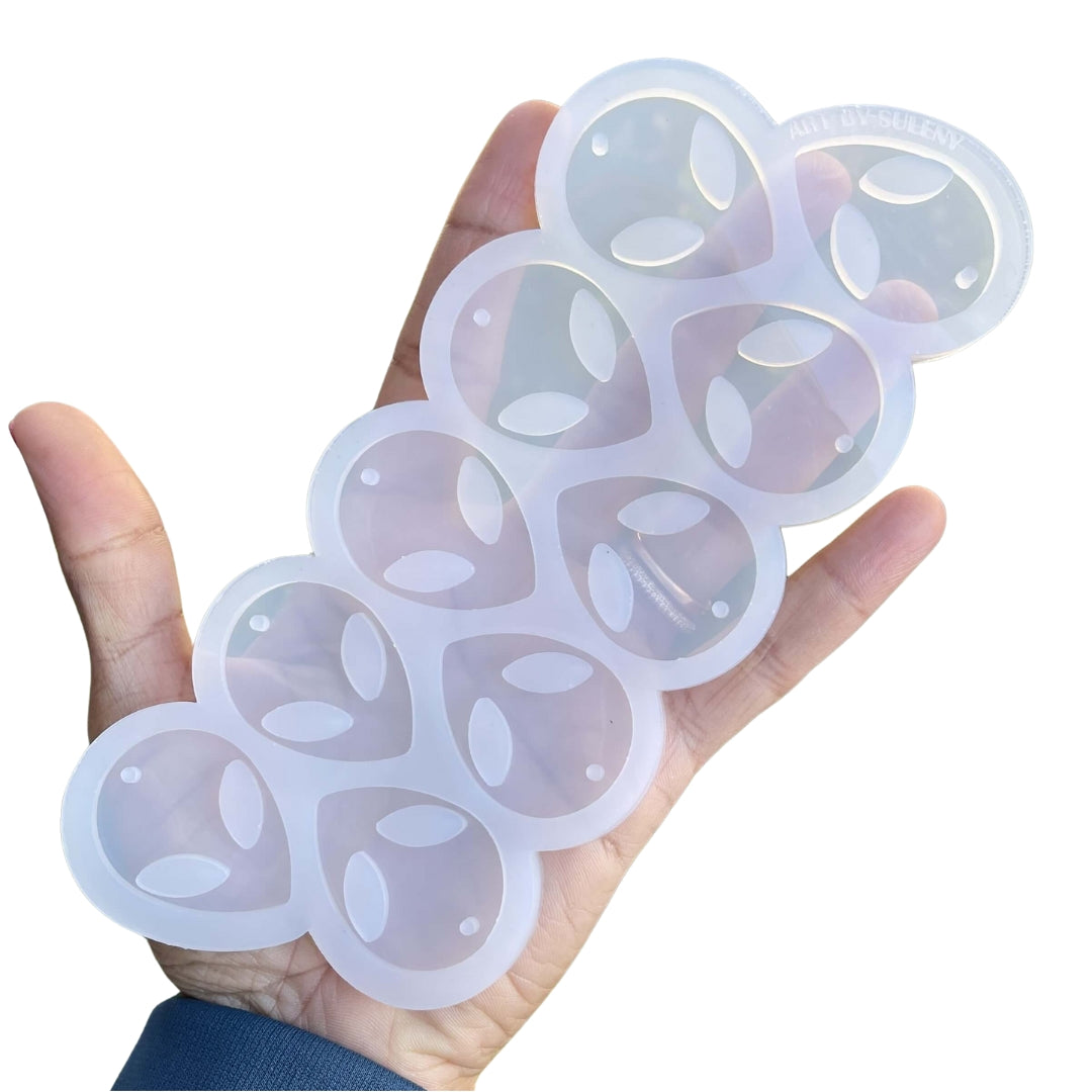 Expertly create unique alien-shaped earrings with the Alien Mold for Resin. The epoxy mold allows for shiny and detailed jewelry, perfect for adding a touch of otherworldly charm to any outfit. Made with durable materials, this mold is easy to use and perfect for resin crafting enthusiasts.