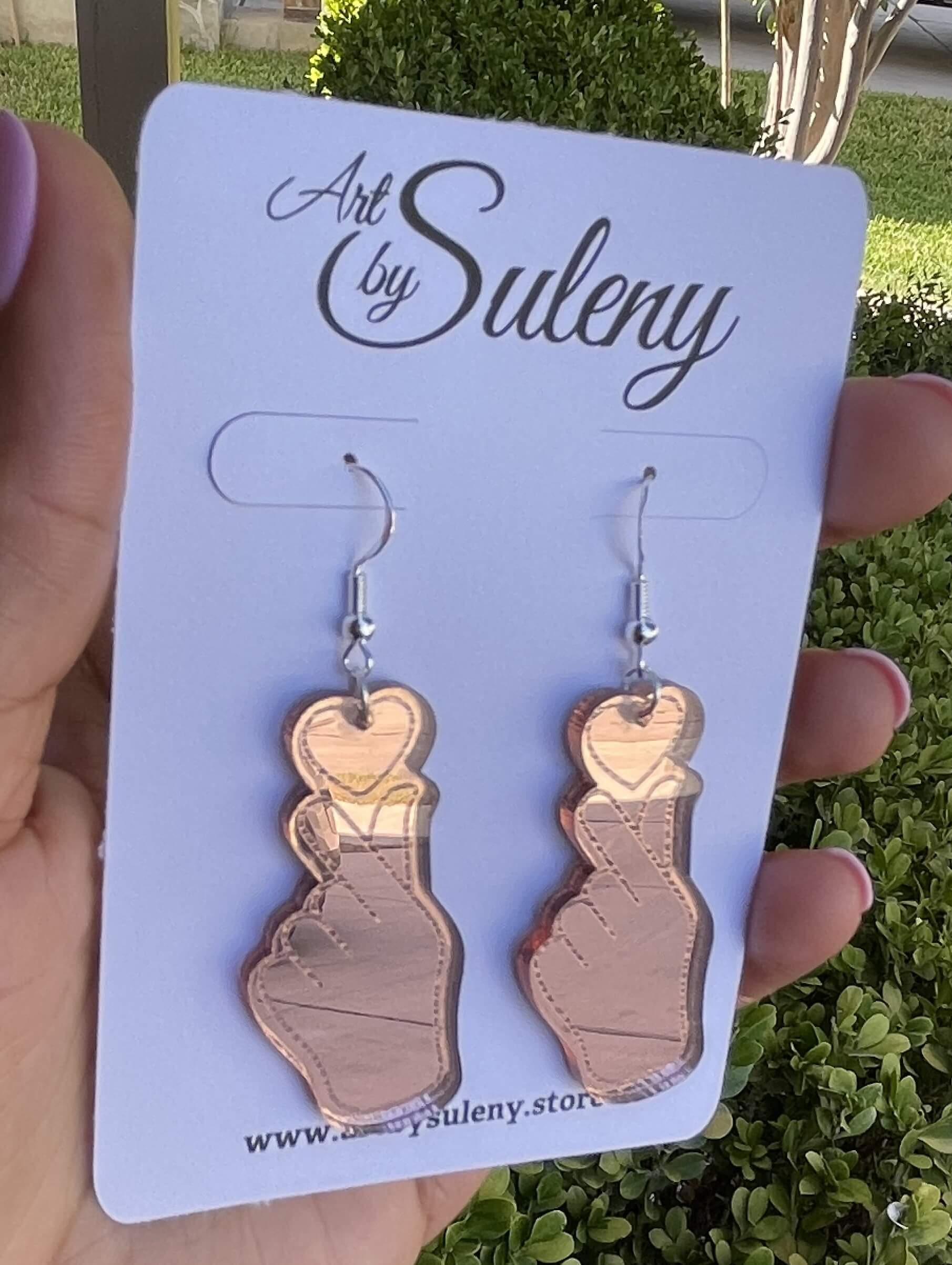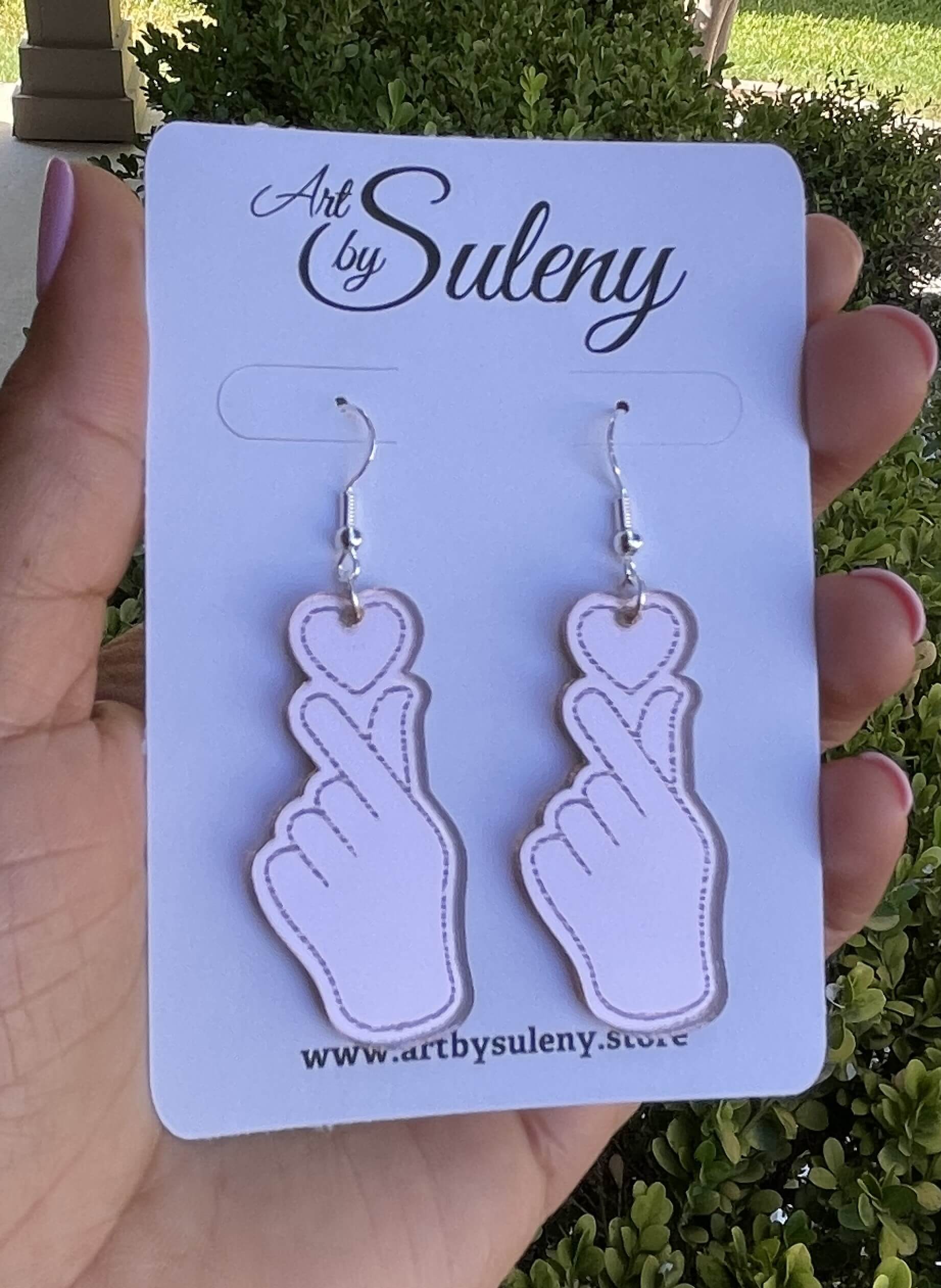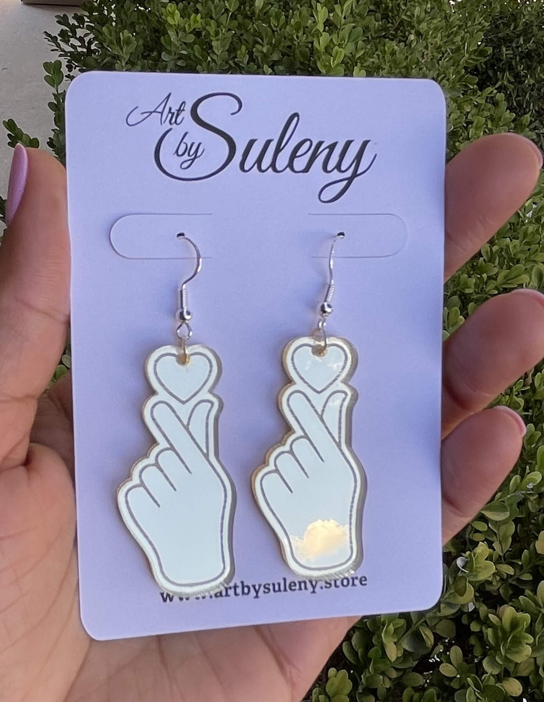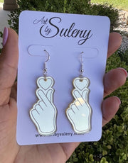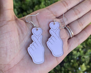 K-Pop Hand Heart Korean language Cute Love Sign Korea Dangle Earrings KPOP